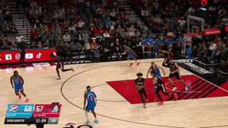 次节,亚历山大连得4分对攻开拓者,里斯命中三分,阿夫迪亚两罚全中以及格兰特突破上篮,亚历山大连得5分,里斯和霍勒迪连中2记三分继续反扑,哈腾两罚全中,格兰特命中三分,霍勒迪更是三分两连击,里斯再中三分,开拓者凭借一波三分雨追到仅落后1分;威金斯和华莱士三分止血,霍乐迪又中三分,亚历山大中投得分,哈腾准压哨空接,半场打完雷霆65-57领先8分;这一节开拓者全队命中8记三分,单节追回12分打回悬念。